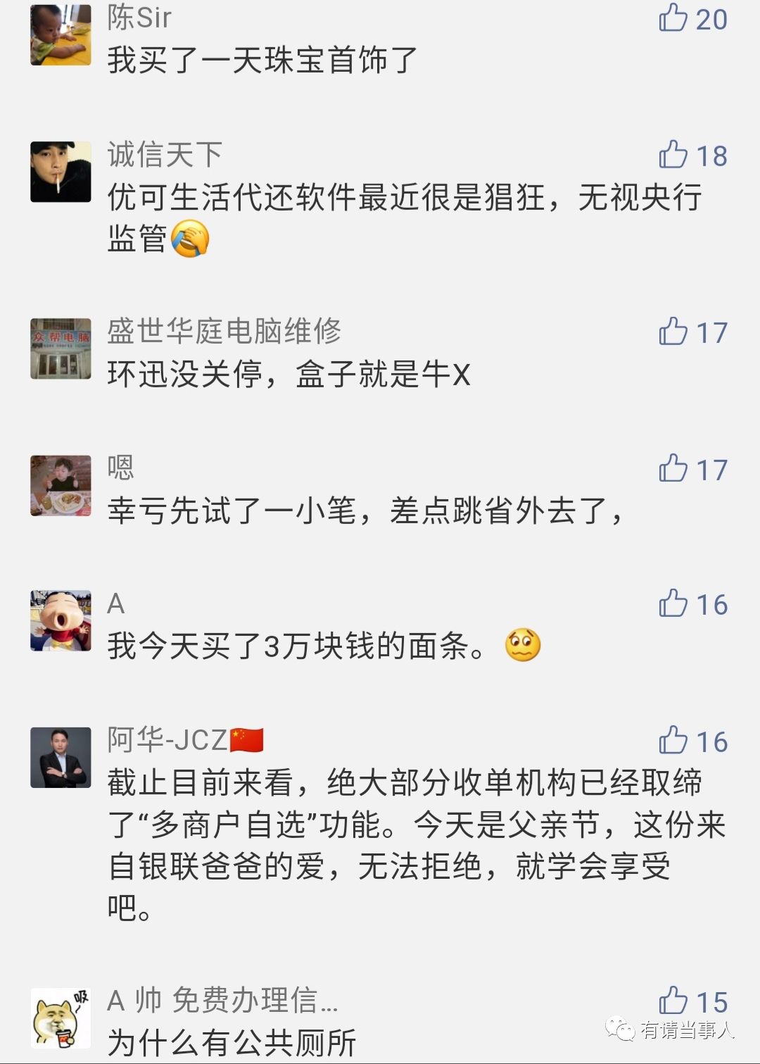 那么,没有了自选商户后的移动支付,还有没有乱跳吗现象?所说的智能匹配真的智能了吗?匹配出来的又是一种怎样的行业乱象?究竟乱到什么程度?或许,看了下面这组业内人士的吐槽评论,我们可窥一斑!